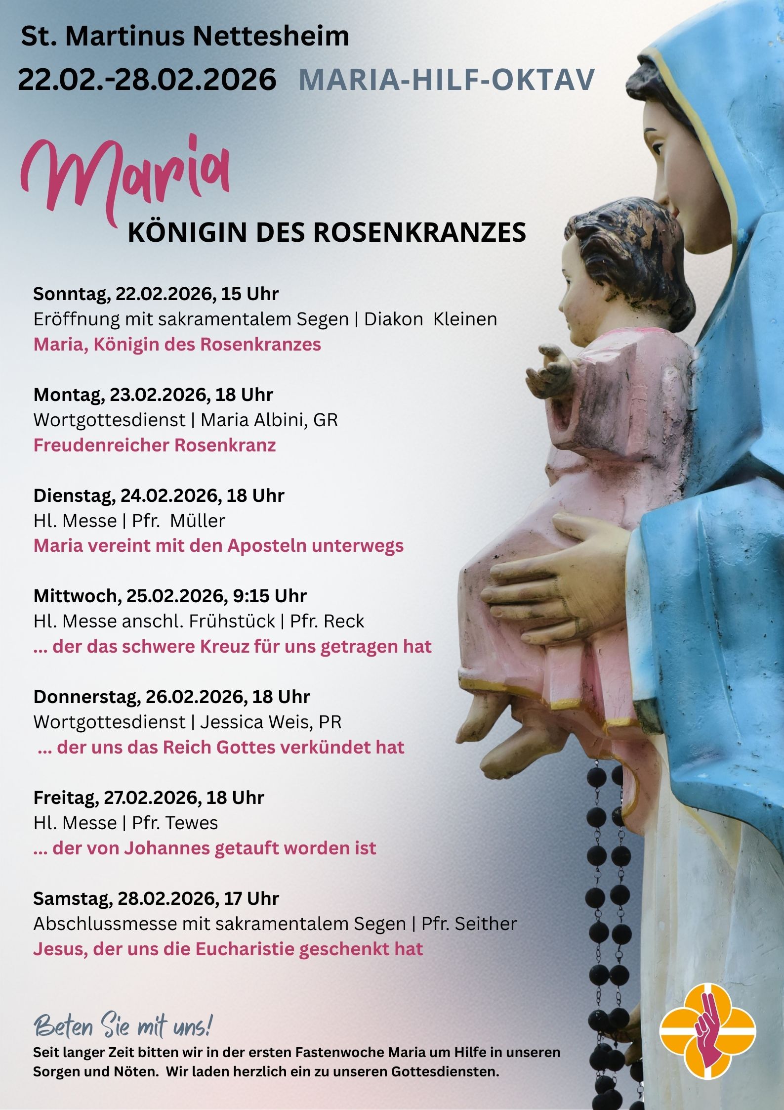 Start in die Fastenzeit:Maria- Königin des Rosenkranzes